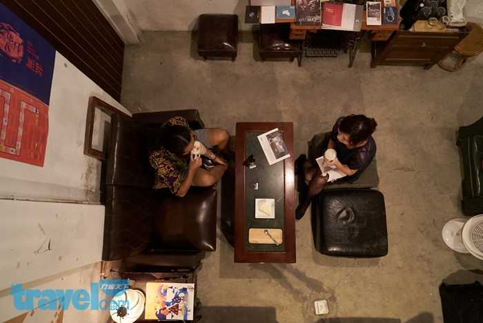 二層樓的平房將近70年屋齡,沙發和桌椅透露歲月痕跡,牆面貼滿藝術海報,中間還夾雜著社運文案,顯然比起文青小清新,這間咖啡店更充斥著藝術家的奔放不羈。