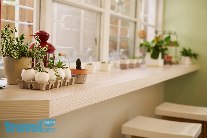 簡單清爽的空間,靠著精通手作的太太巧手點綴,把庭院打點得綠意盎然,加上許多自製小裝飾,讓空間瀰漫家的溫馨感。餐點數量不多,但樣樣是得意之作,烏金排骨以烏醋的甜酸和果香調味,嫩中帶彈的肉質十分鮮美,香烤雞腿以特製蔬菜醬醃製5天,每一口都蘊含蔬菜的清甜。