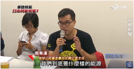 「我們需要”多對話”,而不是”多對立”。」地球公民基金會台北辦公室主任--周東漢,在中視【台灣大未來關鍵2016-重啟核電日本何能核能?!】試片座談會中,一語道破,台灣社會長期以來探討核電立場,僵持不下的局面。周東漢說,「若核一、核二如期除役,核四不啟用,我們面臨這些限電缺口,該怎麼辦?別變成不用核能,就要用火力,火力發電,二氧化碳反而提高。」他強調,不論反核遊行,還是中視【60分鐘】等相關媒體報導,都在教育民眾反思,「台灣,到底需要什麼樣的能源。」