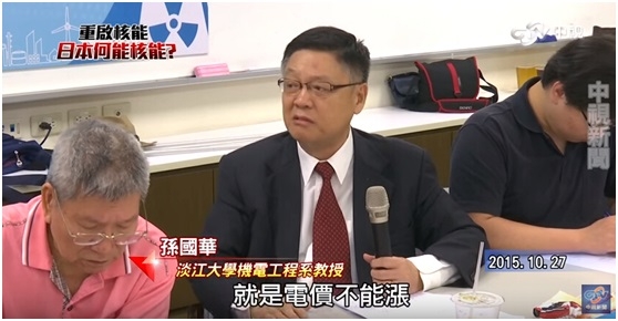 「國家要長期發展,環保、能源、生態都要永續,沒一樣可以放棄!」前立委、淡江大學機電系教授--孫國華指出,「台灣對於能源,向來只有一個共識,就是不能漲電價,其他沒有共識,怎麼辦?」