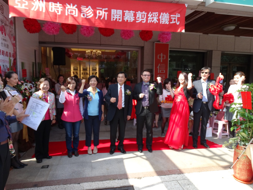 亞洲時尚診所台南館昨天開幕式,由亞洲醫美集團董事長陳守華、副董事長廖蓓琦主持,立委陳淑慧、台南市議會議長李全教、市議員洪玉鳳、蔡淑惠、許至椿、蔡玉枝及李中岑應邀剪綵祝賀,冠蓋雲集,台南市婦女團體將會場擠得爆滿。