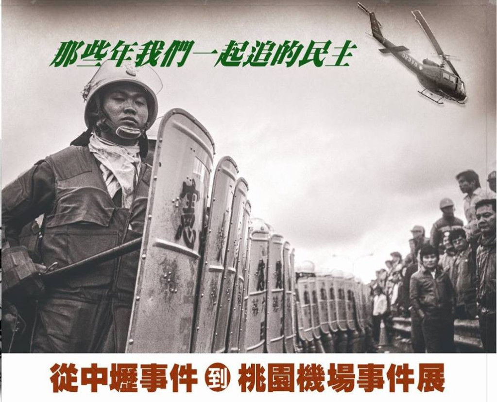 「那些年我們一起追的民主--從中壢事件到桃園機場事件展」展覽海報,是由攝影師邱萬興設計。(陳銘城提供)