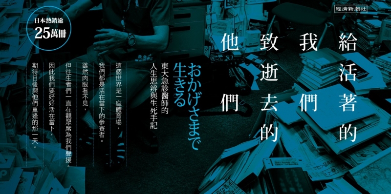 《給活著的我們,致逝去的他們》,我喜歡這個書名。作者矢作直樹是東大急診室醫師,看盡人在生死交關的掙扎搏鬥,心有體悟。他相信,在我們活著的世界旁邊,有另一個「看不見的世界」。只要心存感謝,無形世界的力量將一直圍繞著我們。