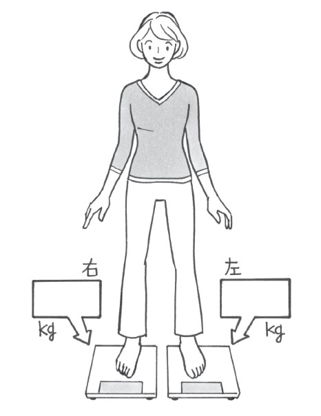 雙腳分別踏上兩台體重計,便可輕易判斷身體是否左右平衡。肌肉一旦失衡,重心會偏向某一邊,讓左右的重量產生差距。