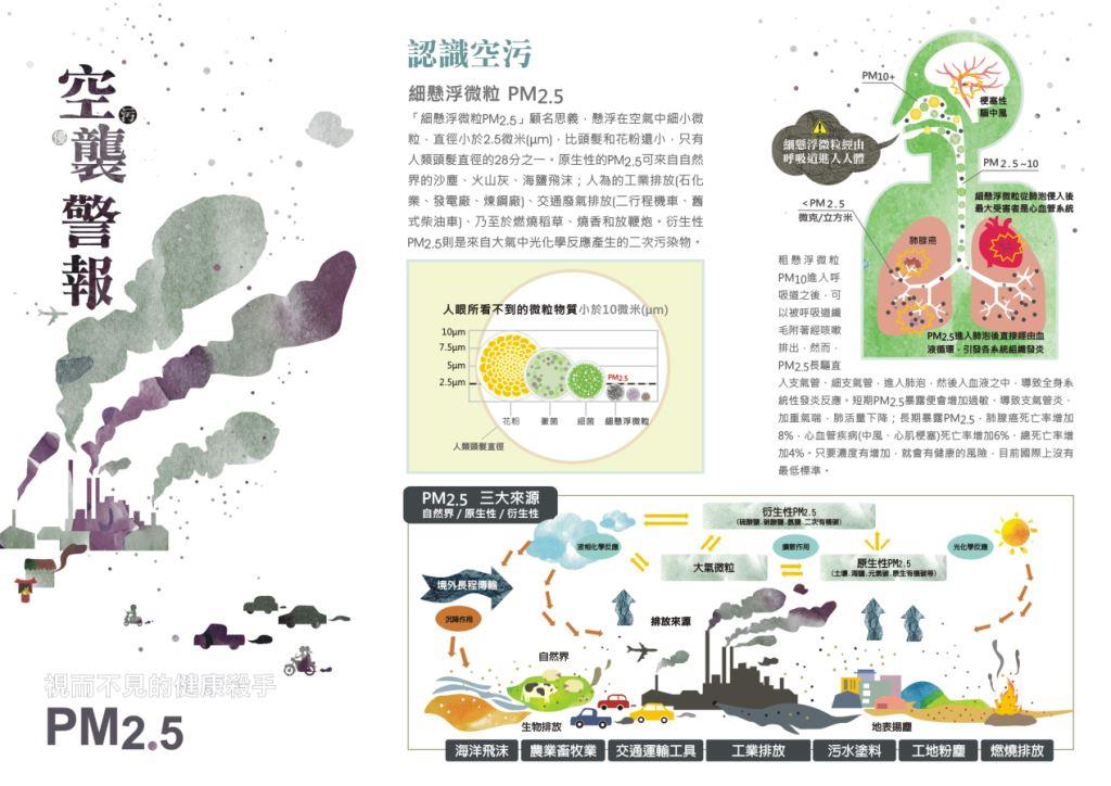 懸浮微粒(particulate matter, PM)是一種懸浮在大氣環境中混合固態及液態的粒狀污染物,其粒徑大小涵蓋範圍廣泛且組成分複雜;目前已明確知道空氣中懸浮微粒,由於粒徑極小,易隨呼吸進入人體,對健康造成影響。會對人體健康造成危害,粒徑愈小,尤其是細懸浮微粒係:指懸浮在空氣中,氣動粒徑小於等於2.5 微米(微米µm=0.000001公尺=0.001公分)的粒子PM2.5,經人體吸入後可停留於肺泡區,能直接或間接引起呼吸道疾病、心血管疾病等傷害,特別是對氣喘、呼吸道疾病、心肺功能疾病患者、老人及小孩等敏感族群會造成較大的健康影響。