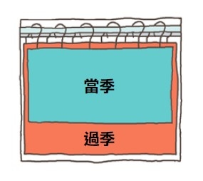 須區分成「夏季衣物」、「冬季衣物」,而過季衣物則收納在後方。