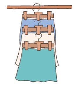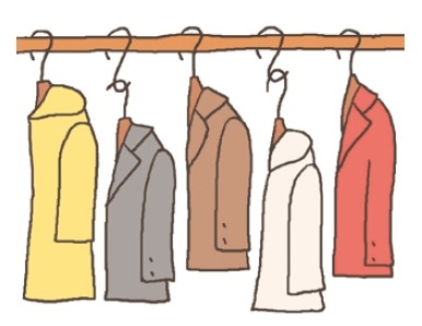 容易起皺的衣物、外套、夾克、褲子、裙子等等,比較適合用衣架吊掛起來收納。不過這些衣物就算吊掛起來也很佔空間,後面會介紹這些衣物不同的收納方法,讓收納時更省空間、需要穿著時更方便。