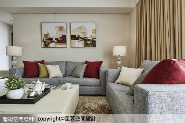 (2)【圖說】廳區以清淺色系做背景,搭配家具軟裝較鮮艷顏色,凸顯視覺焦點。
