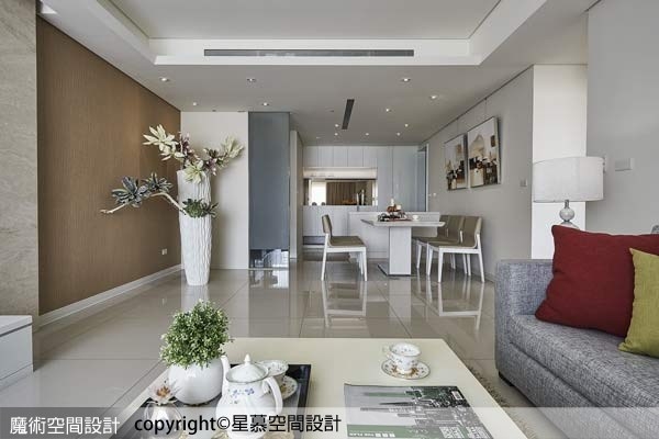 1.客、餐廳採開放空間安排,同時強調光線與色彩均能相互調合,設計間接光源以融合餐敘時所需的寧致。