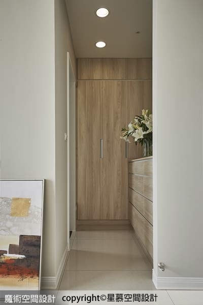 (1)【圖說】星慕空間設計高懷萱設計總監、林崴哲執行總監於玄關櫃體透過懸挑、間接光源方式,營造開闊感受。