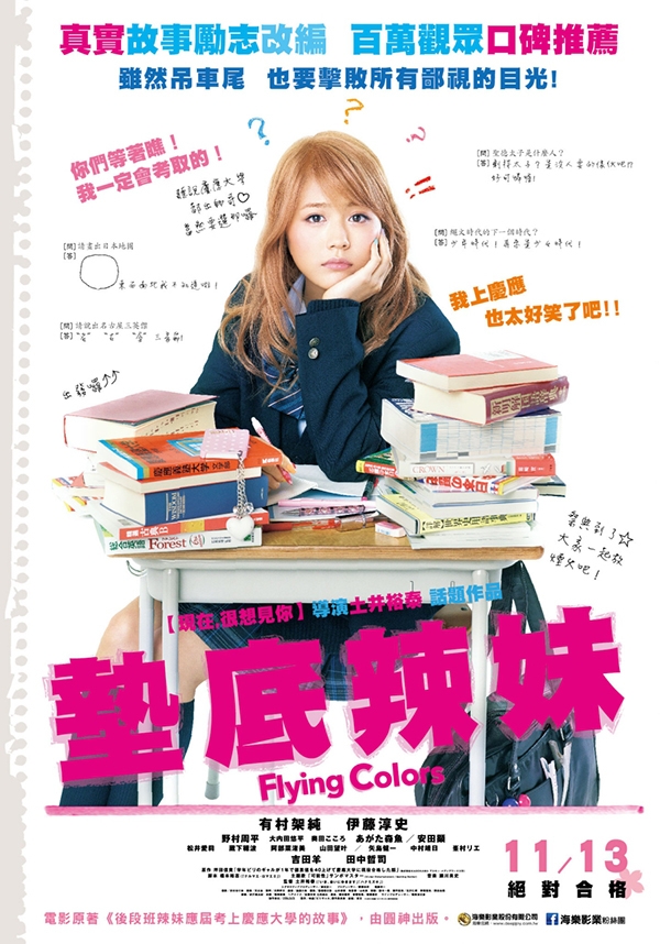 改編真人實事的電影【墊底辣妹】,由【現在,很想見你】土井裕泰導演執導,找來了【小海女】有村架純和【電車男】伊藤淳史主演。沒有大明星卡司,但本片精彩的故事,除了吸引年輕學子,更打動了不少父母、老師的心,引起各個世代的共鳴,最終在票房上獲得近30億日幣,盤據電影排行榜長達3個月,成績超越【寄生獸:完結篇】、【進擊的巨人】等大製作的電影,成為2015年度票房黑馬。