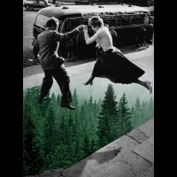 然而,在每天暴露於各種聲光色等刺激下,單純的黑白復古攝影已不夠有看頭:土耳其藝術家Merve Ozaslan大膽將二十世紀初時尚雜誌內的黑白照片與自然景觀拼貼,作品名為Natural Act collages,創造出意想不到的前衛藝術效果!更促成雙重對比:1)黑白與彩色的兩造差異、2)以真實照片創作出科幻超現實視覺作品,時空錯置的魔術感十足,出乎意料的契合,還帶點小叛逆的玩味。