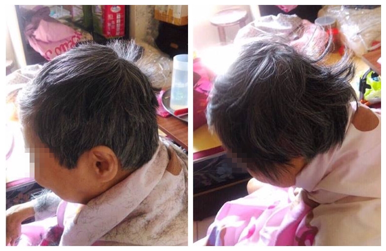 奶奶看著剪完髮的照片,難過的哭了。