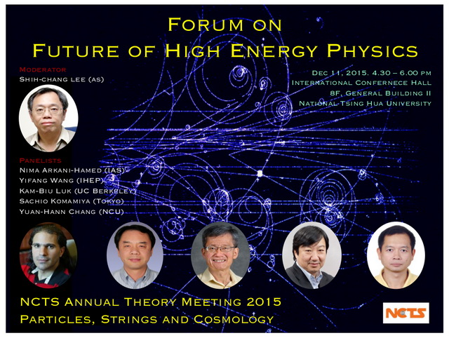 為加深國內外專家學者對高能物理實驗未來重大發展趨勢的認識及參與,國家理論中心特邀多位專家學者,11日下午於國家理論中心舉辦國際公開論譠。活動受邀學者包括:美國普林斯頓高等研究所教授,2012年基礎物理學突破獎 (Fundamental Physics Breakthrough Prize) 得主Nima
