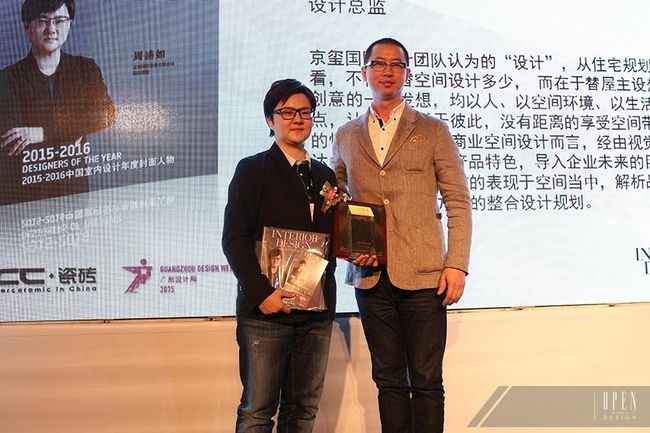 中國室內設計年度封面人物,是由美國《室內設計》中文版雜誌首創的金牌活動,與中國建築學會室內設計分會共同主辦,ICC磁磚全程贊助。2015年12月4日,「2015-2016中國室內設計年度封面人物」頒獎典禮在廣州琶洲保利世貿博覽館隆重舉行。在美國《室內設計》中文版雜誌王瀟女士與ICC磁磚總經理漢貝托先生的致詞展開序幕。
