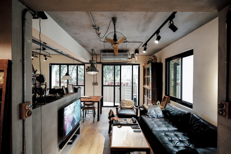張先生與張太太過去住在新莊,舊家走的是現代極簡風,去年考量工作通勤與孩子上學方便,決定搬到內湖,從景觀極佳的高樓層公寓換成近40年的一樓老房子,夫妻兩人不但不感可惜,反而覺得更順心自在,因為老房子彈性大,趁著整修,剛好可以依照自己想要的樣子重新安排格局、裝潢設計。長年喜歡收集古物的張太太將新家定調為復古工業風,除了大結構裝潢交由設計師處理之外,家中所有家具家飾,幾乎全是自己從台灣各地或是國外網站上搜羅而來,歐洲的工業燈具、日本的老櫥櫃與台灣的老木門,在開敞的空間中相互混搭輝映,交織出別開生面的工業風格樣貌,不僅充分展現主人獨特美感,也巧妙帶出台灣在地氣息,在一片強調歐風的復古潮流中,顯得相當難能可貴。