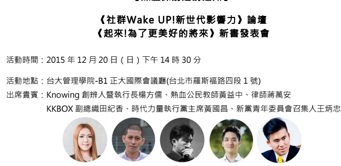 《社群Wake UP!新世代影響力》論壇 時間:2015/12/20(日)