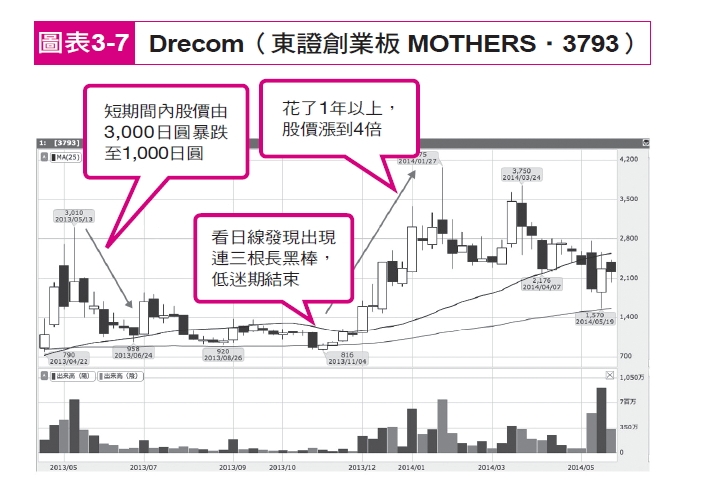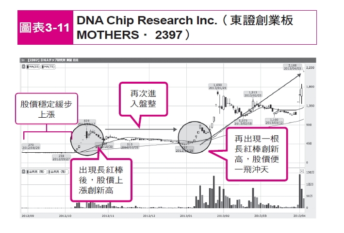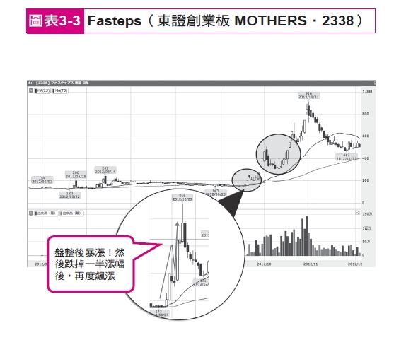 特別是股價 100∼200 日圓(約新台幣 30∼60 元)左右的低價股,有很多個股具有一漲便會暴漲的特性。造成這種現象的原因很多,如業績良好、有正面題材⋯⋯等,但也有些個股沒有特別原因,只因為是作手炒作而上漲。