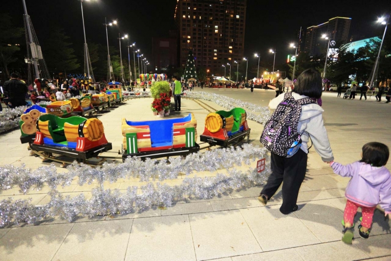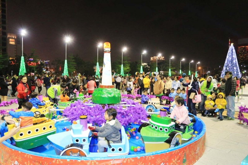 這不是遊樂園的遊戲設施嗎?居然能想到配合聖誕主題在廣場前放置遊樂園設施提供給民眾遊玩,台中市真的不一樣了。(房子買的好啊媽~)