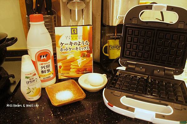 雖然我用的市售的鬆餅粉,但還是覺得另外加入雞蛋、鮮奶之類的味道會更好喔!