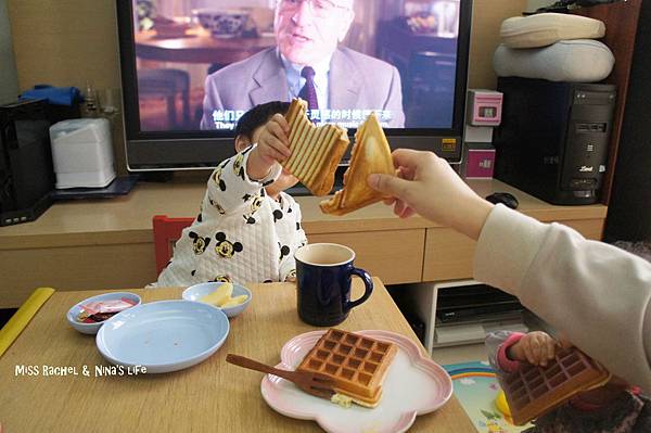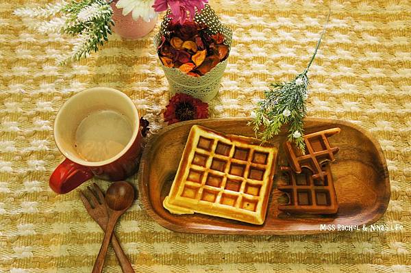 幫自己煮一杯杯甜甜的熱巧克力牛奶x格子鬆餅,一種偽單身的愜意早餐~~love it!