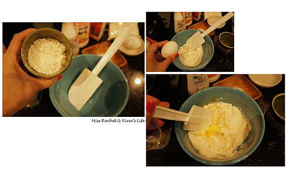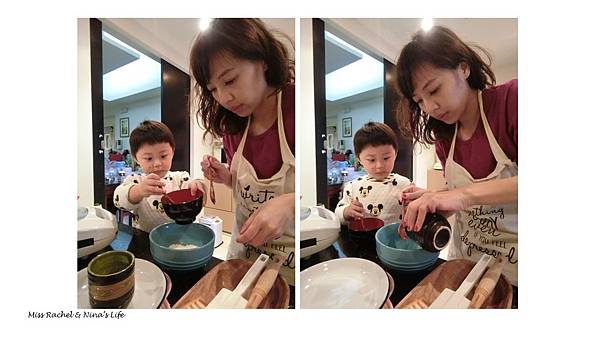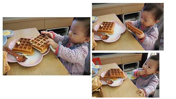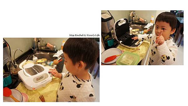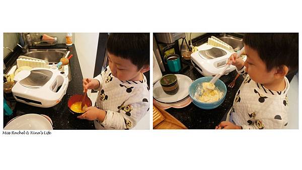 像是打蛋、鬆餅糊的材料也是請他幫我一起攪拌,