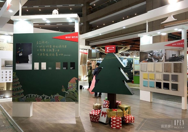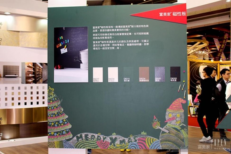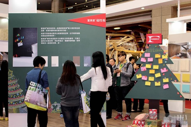 (圖:在展覽現場以富美家®磁性板作為互動活動用的咖啡廳背牆及聖誕許願樹,以使來場參觀的民眾進行體驗。)