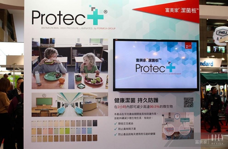 在本次的展覽上,富美家®搶先曝光預計於明年初上市的金麗金屬新色與富美家®磁性板新品。現場同時展出今年六月上市的全新系列,該系列以美耐板新色與180fx相結合,呈現咖啡廳的吧檯空間設計。另外還有富美家®潔菌版™以及富美家®超耐磨木地板系列。今年所有新色和新品的展示,呈現更多元和豐富的顏色及產品應用。