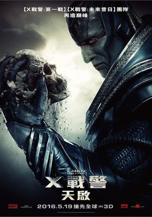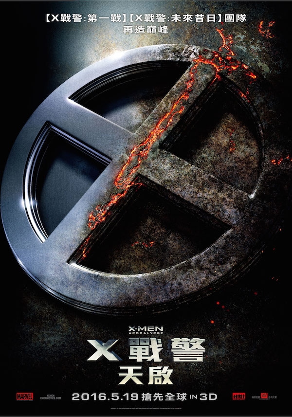 福斯影片明年將推出漫威英雄超賣座系列【X戰警】新作—【X戰警:天啟】(X-MEN: APOCALYPSE),並找來曾一手打造【X戰警】系列電影、去年再度回歸【X戰警:未來昔日】的鬼才名導布萊恩辛格(Bryan Singer)親自操刀,新作【X戰警:天啟】將延續【X戰警】前傳成為三部曲最終章,完整鋪陳【X戰警】的世界觀,該片更是布萊恩辛格個人拍攝的第四部【X戰警】系列作品,並力邀年輕版變種人演員全數回歸,包含X教授—詹姆斯麥可維、萬磁王—麥可法斯賓達、魔形女—珍妮佛勞倫斯、野獸—尼可拉斯霍特,以及令全球影迷記憶深刻的快銀—伊凡彼得斯等,首支中文前導預告片將於台灣時間12月11日晚間10點與全球同步上線,前導海報今日亦搶先公開,【X戰警:天啟】台灣將於2016年5月19日搶先全球登場!
