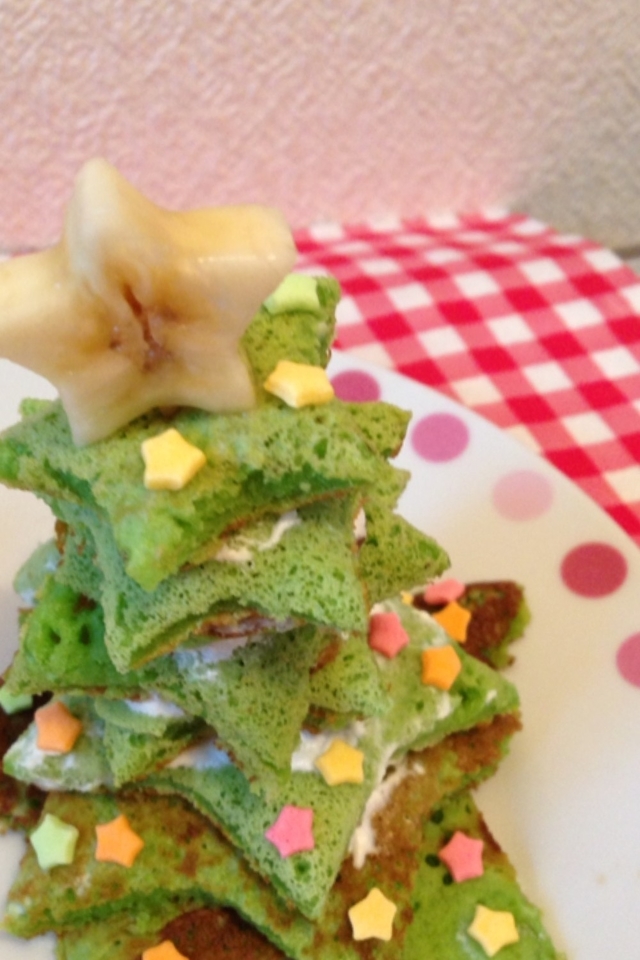 使用製作餅乾時的星星造型的模型,做個小型的鬆餅樹很可愛也很推薦喔~