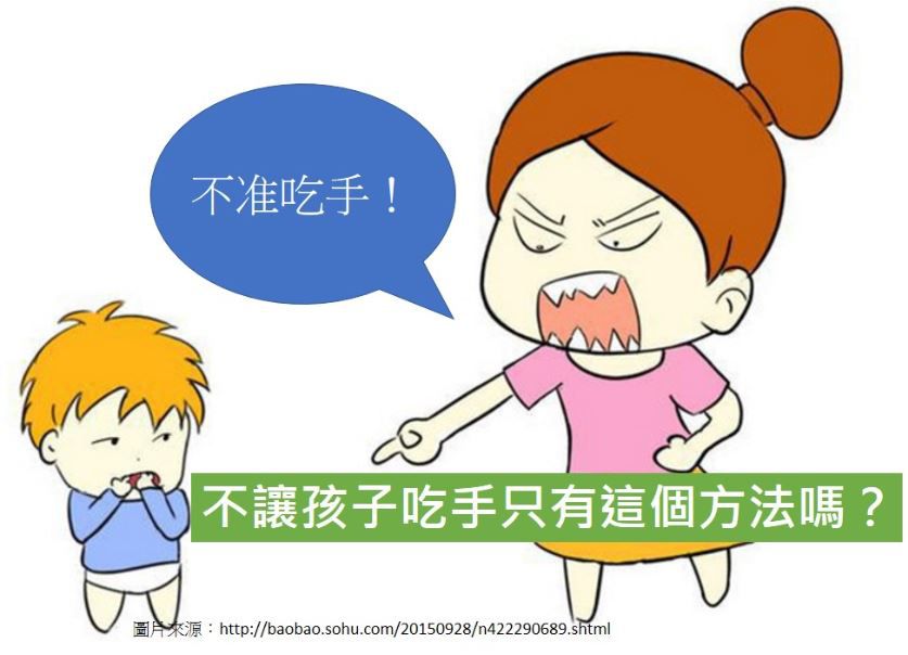 溫柔的提醒:如果孩子好像都是在放空、無聊的時候會吃手,與要吸引你的注意無關,這時只要溫柔的提醒孩子就好,如果是用強烈禁止或者是斥責,可能會造成孩子的壓力反而造成反效果。要是在外面,建議和孩子有個默契用手勢或特定的語言提醒孩子,若當眾明顯提醒,對孩子也可能是另一種壓力,無法自己排解時反而會在其他時候吸得更嚴重。