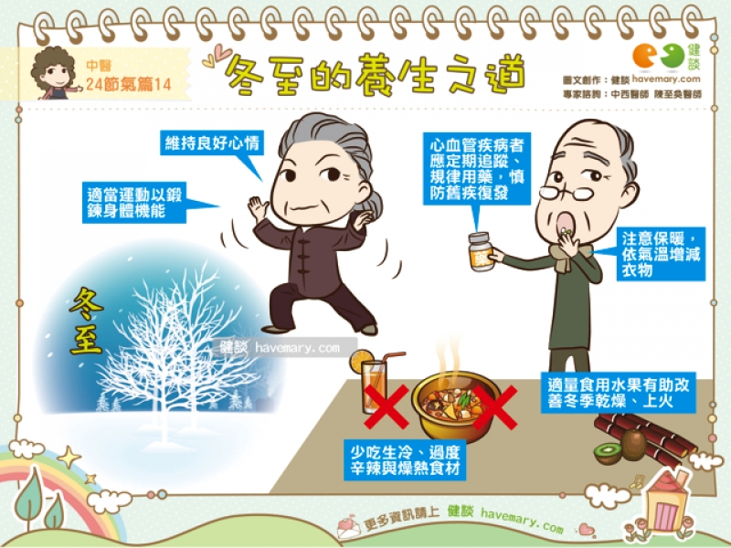 1. 冬至天寒,有心血管疾病者應慎防舊疾復發,建議定期追蹤、規律用藥,有助於穩定控制病情。