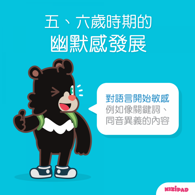 這個時期的孩子對於語言的幽默成分非常敏感,像是關鍵詞、或是同音異義的字詞。比方說: 這裡有 “三棟房子” ,如果孩子聽成 “山洞房子”,他們就會感覺特別有趣,而因此大笑。建議這時期的父母可以多讓孩子聽一些童謠、兒歌、或是有押韻的故事詩詞,培養孩子在這時期對語言發展的幽默感喔!