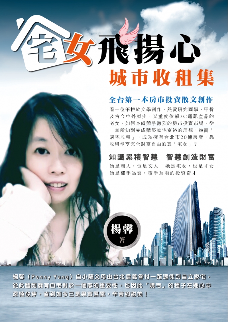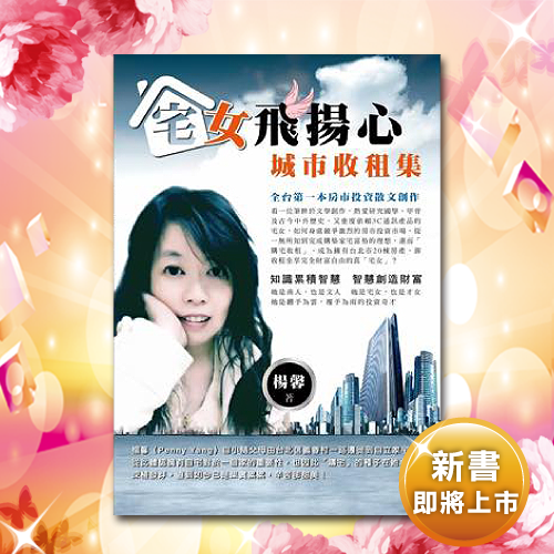 《宅女飛揚心-城市收租集》跳脫以往房產書籍的風格,全台第一本以"散文"形式創作,帶點小說感的文筆,要觸動大家的心!