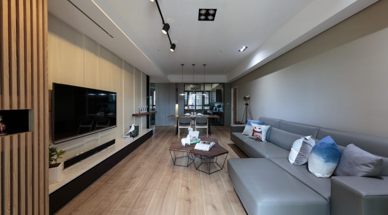 客廳與餐廳之間採開放式設計,流動的空間格局營造出寬敞氣度。