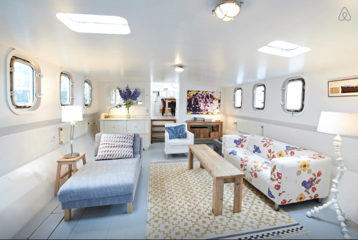 陸地上各式各樣的民宿都住過後,也絕對要來阿姆斯特丹體驗運河上的船屋,感受漂浮的生活!這座船屋的設計不僅不輸一般飯店裝潢,廚房、客廳甚至浴室,完全應有盡有!傍晚還能趁夕陽到船頭的甲板上享受美景再配上一杯紅酒,這不就是人生嗎?