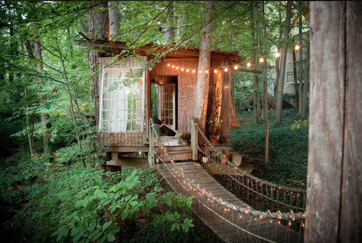 每次看美國節目「樹屋大師」為屋主打造夢想中的樹屋都好羨慕,尤其這種有吊橋式的分離樹屋,類似一房一廳的概念,在這裡的起居生活能完全融入自然景觀,吸收山林裡療癒的芬多精。