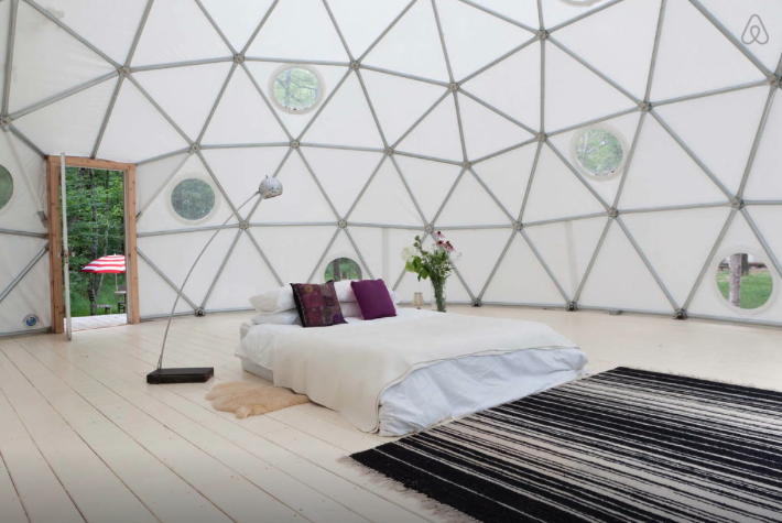 到了紐約,不僅繁華的曼哈頓,妳也可以享受郊區的自然風景。這間現代風的蒙古包民宿就在卡滋奇山的農村中,若妳喜歡戶外活動、夏天在天然的瀑布泳池游泳、或逛逛農村市集,但又不想放棄飯店般的居住環境,這座幾何蒙古包絕對是下次妳到紐約的首選!