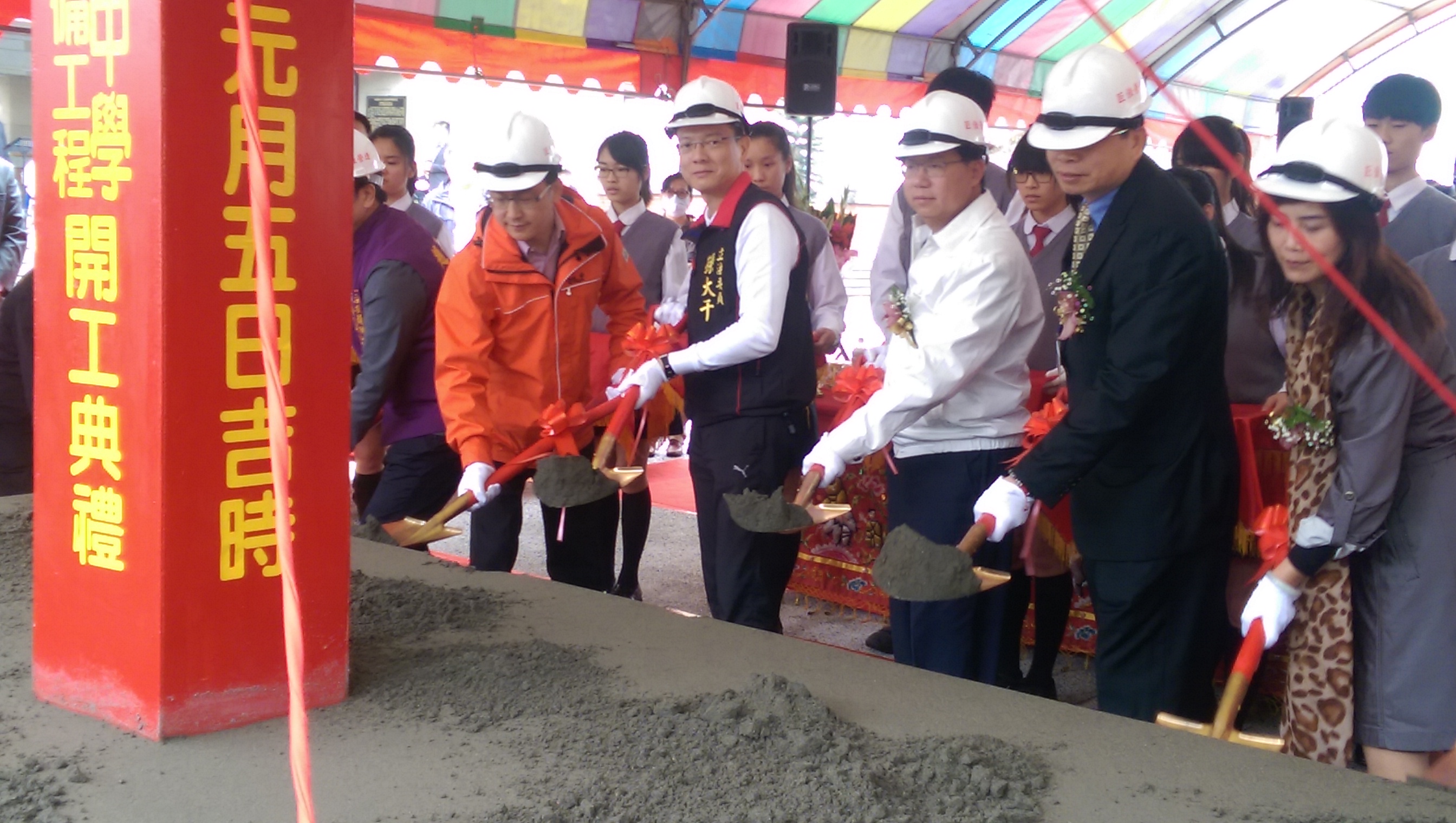 圖說:大溪高中教學圖資大樓新建設與設備工程五日由市長鄭文燦等進行奠基典禮。(記者陳寶印攝)