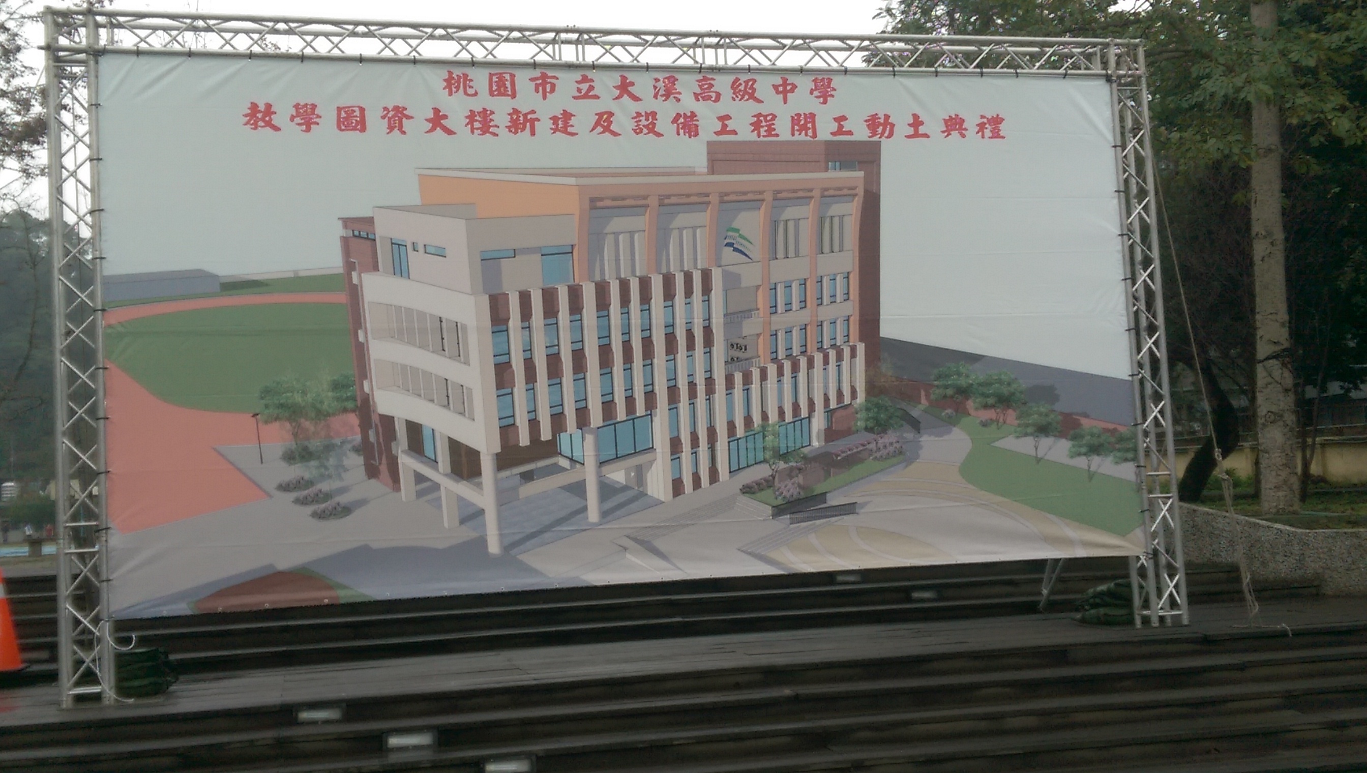五日的大溪高中教學圖資大樓新建設與設備工程奠基動土典禮,是於上午九時許在該校崁津廣場舉行,由校長莊祿崇主持,包括市長鄭文燦、立孫大千、市議員楊朝偉、李柏坊、陳治文、趙正宇、市府教育局長、大溪各級學校校長、家長會長等出席,場面熱烈。