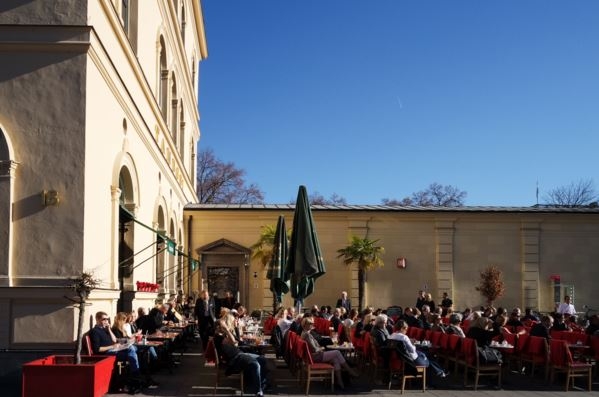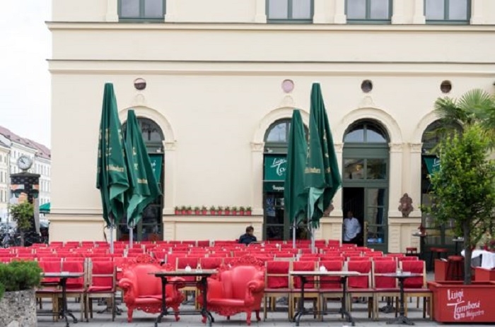 Cafe Tambosi就位在地鐵站Odeonsplatz出口廣場上,腹地寬敞,上午為最佳向陽時刻;是種就算路過也值得站著喝杯五分鐘咖啡的全民健康運動。