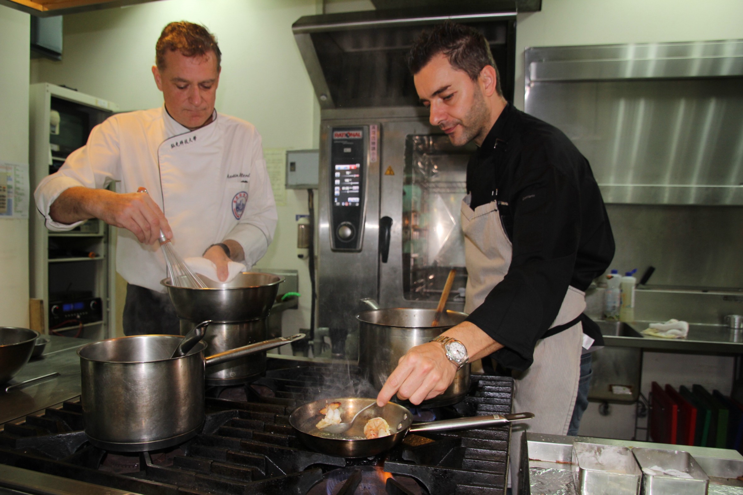 Pappalardo)這星期開始到到校協同教學,當場示範義式櫛瓜燉飯拿手經典菜,麥高樂則製作綜合鮮莓佐沙巴翁醬甜點,兩位名廚精湛手藝令學生大開眼界。