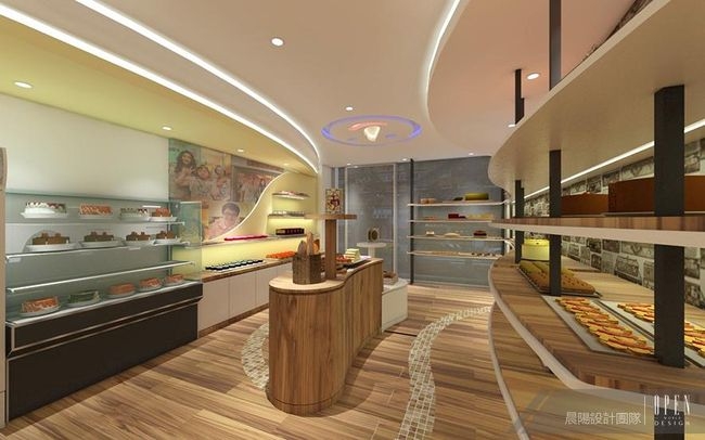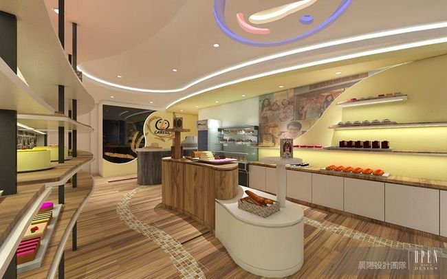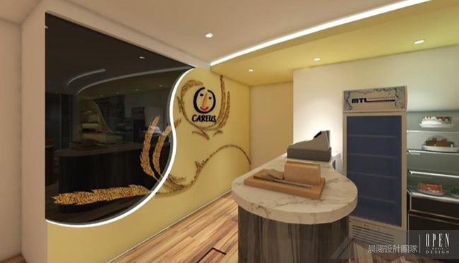 以柔和的木紋鋪陳場域,除去過多的華麗選材,烘托憨兒最純真的本質。空間中,運用大量的弧形線條與動線,不僅避免尖角的碰撞及傷害,圓滑的牆面層板和中島,更展現出這群天使樸質、溫和的無稜角生命,並用實體設計的口吻,描繪了憨兒柔軟謙和的心。天花板的圓滑曲線,以鵝黃的色彩由櫃檯蔓延至牆面,翩翩稻穗,搖曳著收割的歡愉,巧妙的敘說麵包的重要元素—「小麥」。