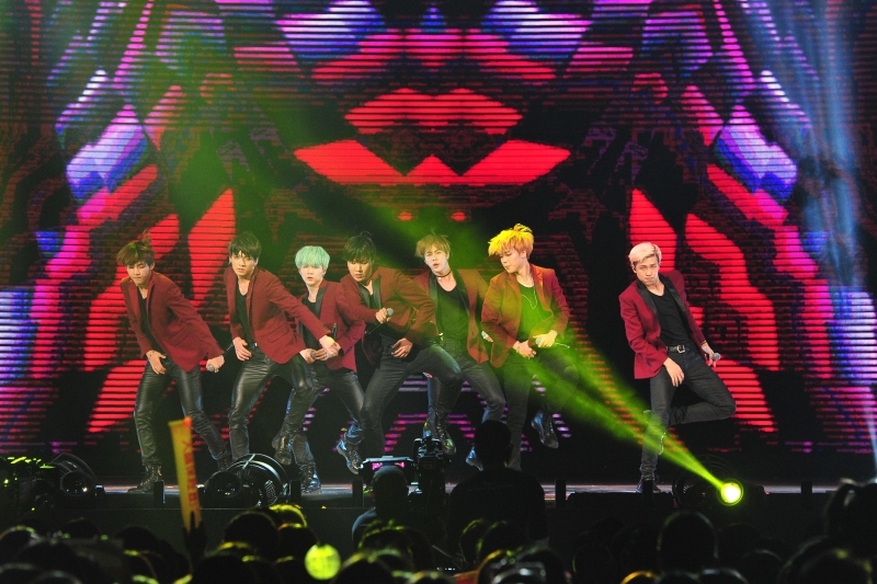 韓國夯團「BTS防彈少年團」7位成員Jin、SUGA、J-HOPE、Rap Monster、智旻、V、Jung Kook中場向觀眾拜年,全場歡聲雷動。大家中文都說得相當流利,舉凡「猴年發大財」、「猴年好運到」、「猴年亨通」、「猴年猴賽雷」、「猴年發財福氣來」、「猴年後來居上」、「猴年旺旺來」等都難不倒他們。他們還和哈林對尬「快樂頌」,中韓文歌詞車輪戰,觀眾喝采聲不斷!