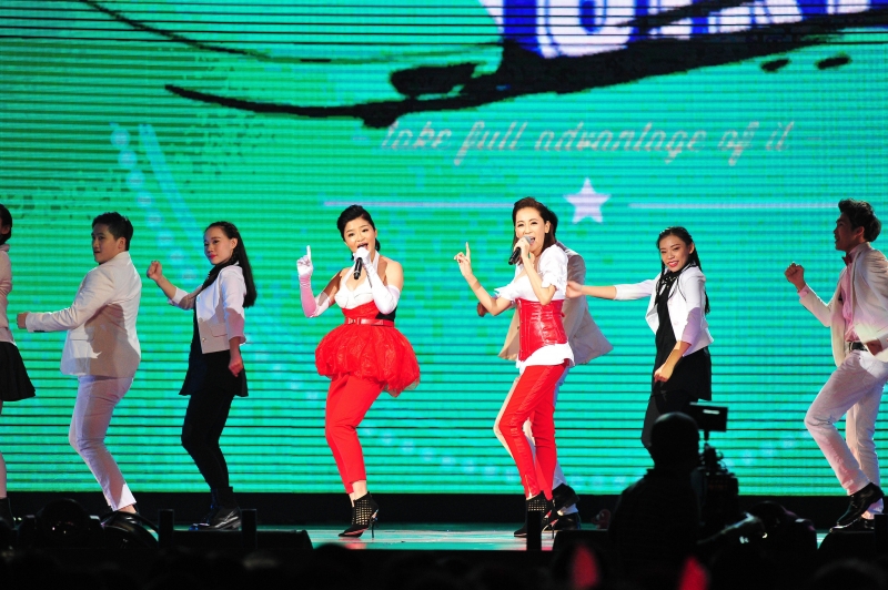 「情歌天后」丁噹一襲淺藍抓皺短禮服露出細長雙腿帶來經典歌曲「手掌心」、「原來你都在」、「我愛他」,最後以動感舞曲「野獸」又唱又跳讓現場瞬間熱血沸騰,「性感歌姬」A-Lin則帶來演唱會精華版表演內容,她身穿典雅禮服氣質現身,身後龐大弦樂團伴奏,帶來許多溫馨歌曲,如「忘記擁抱」、「四季」、「Ps.我愛你」以及「家」,讓現場歌迷聽得如癡如醉。而兩位實力派唱將難得同台受訪,讓丁噹直呼:「好想跟A-Lin一起飆歌,一定很過癮。」讓熱情的A-Lin一時興起笑說 :「等等結束我們就直接去唱KTV。」