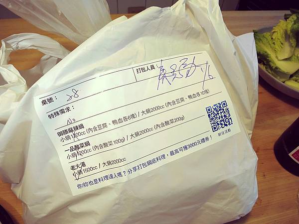 而且很特別的是,打包的袋子上會特別貼上一個類似產地標籤以及替你打包此湯頭的廚師簽名