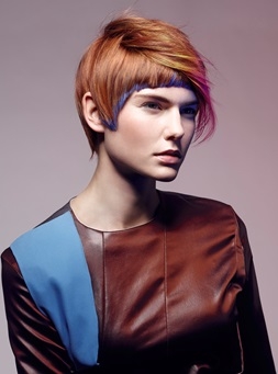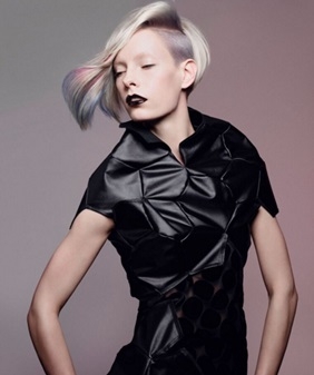 所有『D!SRUPT 瓦解!重生』趨勢中的形狀,都擁有趣味的輪廓。以激光挑染技巧強調重點特色,再與剪裁相互搭配,所有剪裁特色都是變形的圓形輪廓,誇張某些區域來創造破壞性的髮型。