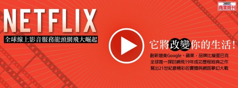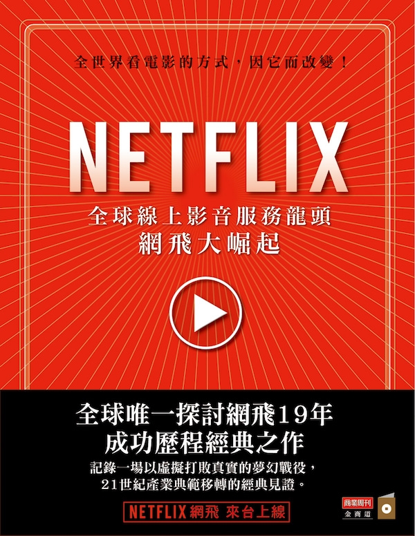 2016年1月7日,全世界知名的影音串流服務NETFLIX(網飛)登陸台灣。獨家自製影集、電影,多裝置觀看平台機制、利用大數據分析我們對影片類型的喜愛,它帶起新的媒體革命。《NETFLIX:全球線上影音服務龍頭網飛大崛起》(商業周刊出版)是全球唯一探討網飛19年成功歷程經典之作,看一家矽谷小公司,如何追求完美軟體和直觀的用戶介面,成為媲美蘋果的時尚領導者,和Google不相上下的創新者,以及星巴克量級的品牌力量!