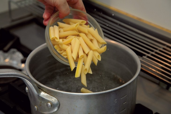 *選擇「廣口淺鍋」:因為短義大利麵的表面面積比長條義大利麵大,燙麵時麵體容易黏在一起。因此建議選擇讓麵條容易散開,不會糾結在一起的廣口淺鍋。