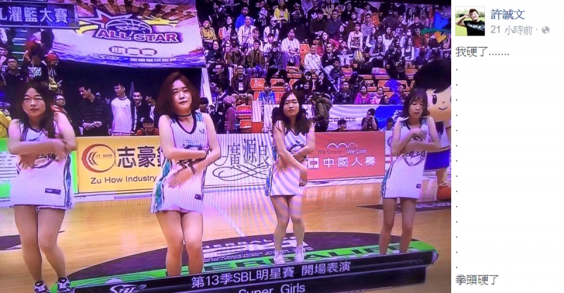 昨天SBL舉行明星賽,由4位T-Super Girls進行開場表演,T-Super Girls是SBL官方專屬啦啦隊,2014年成軍,但是這畫面卻被前球星上傳臉書狠酸「我硬了...拳頭硬了」,並且引起PTT《表特版》討論聲浪。